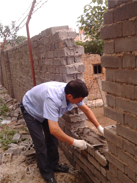 保衛(wèi)小區(qū)安全,服務(wù)中心修補(bǔ)倒塌圍墻