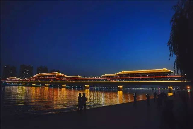 北起渭陽路,南至渭河南岸,橫跨渭河,連通世紀(jì)大道的“古渡廊橋”,名字源自關(guān)中八景之“咸陽古渡”,全長748米,寬14米,是全國首座秦建筑風(fēng)格、雙層人行景觀廊橋,自建成以來立即成為我市地標(biāo)性文化景觀之一。[ 詳細(xì)內(nèi)容